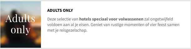 - Controleer of het hotel niet alleen voor volwassenen (adults only) is: dit wordt vermeld in de beschrijving van de aanbieding.