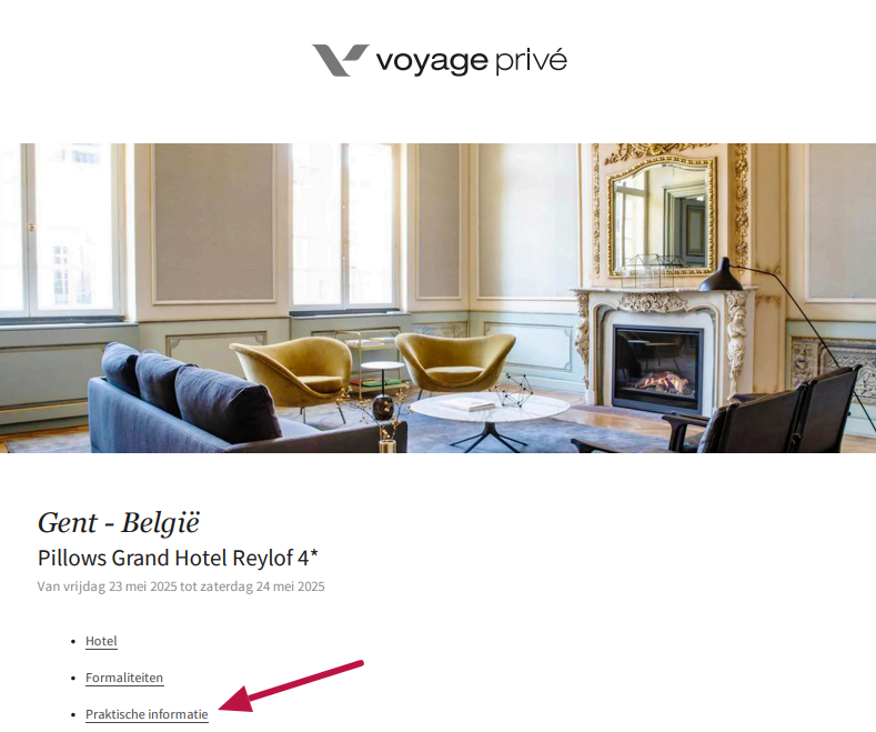 Als je nog niet hebt geboekt, kan je deze informatie eenvoudig vinden in de aanbieding die je bekijkt.