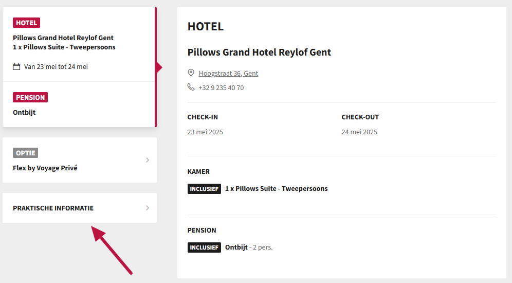Of in het detail van je boeking, onder Praktische informatie.
